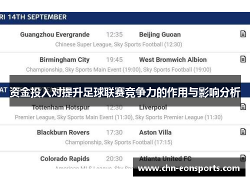 资金投入对提升足球联赛竞争力的作用与影响分析